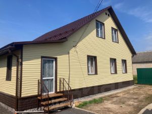 - В доме сделана глобальная реконструкция: по всему периметру стен залит армопояс, построена большая, полностью новая мансардная крыша, выстроены большая пристройка и новая комната, везде залиты бетонные полы, снаружи дом обшит сайдингом, крыша металлочерепица, установлены снегозадержатели и водосточная система.