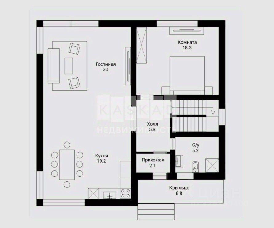 1 этаж: кухня-гостиная-столовая единое пространство с выходом на будущую террасу, спальня, с/у;
